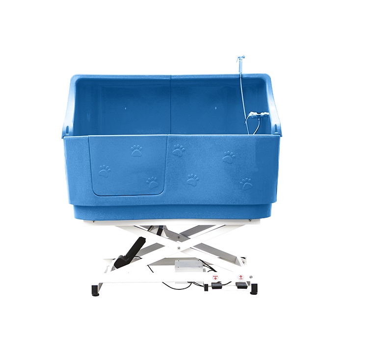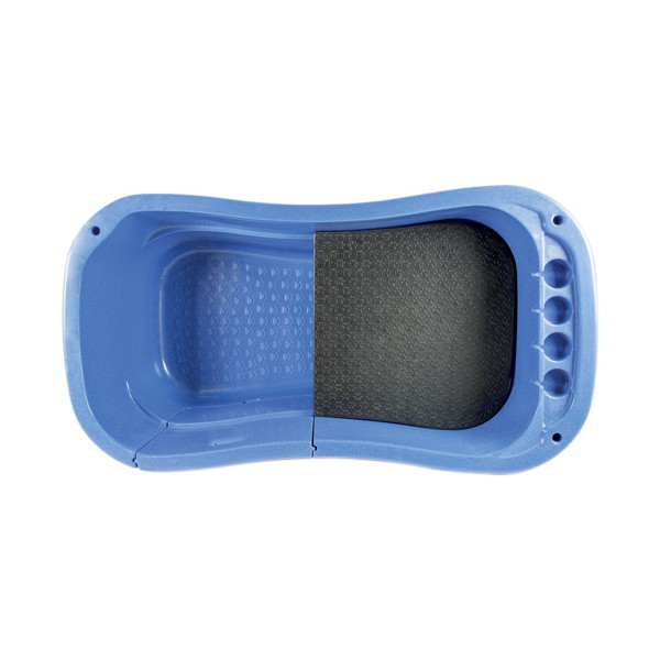 Está equipado con un separador a lo largo de la bañera para un mejor control. Incluye válvula de desagüe, de acero inoxidable, dotada de una cesta en la que se recogen todos los pelos acumulados, para evitar la obstrucción del conducto de desagüe. Incluye trasera de polietileno para evitar salpicar. Esta trasera incluye 2 enganches para las horcas.